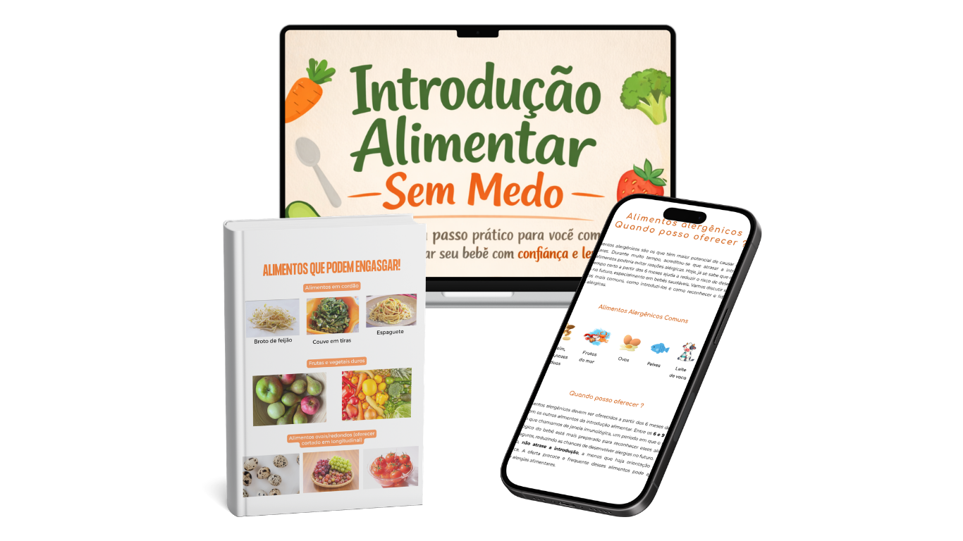 Com linguagem simples e prática, você aprende os fundamentos da alimentação infantil, entende os métodos de introdução alimentar e aplica tudo na rotina da sua família.